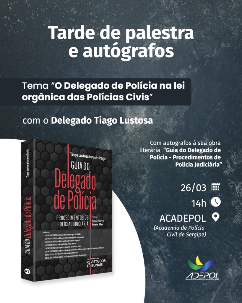 A tarde de 26/03/2024 foi bastante especial, marcada por uma palestra e pela sessão de autógrafos do Delegado de Polícia Tiago Lustosa, que apresentou aos colegas a sua obra ‘Guia do Delegado de Polícia – Procedimentos de Polícia Judiciária’, publicada pela prestigia da editora Revista dos Tribunais. A rica troca de conhecimento e o momento […]